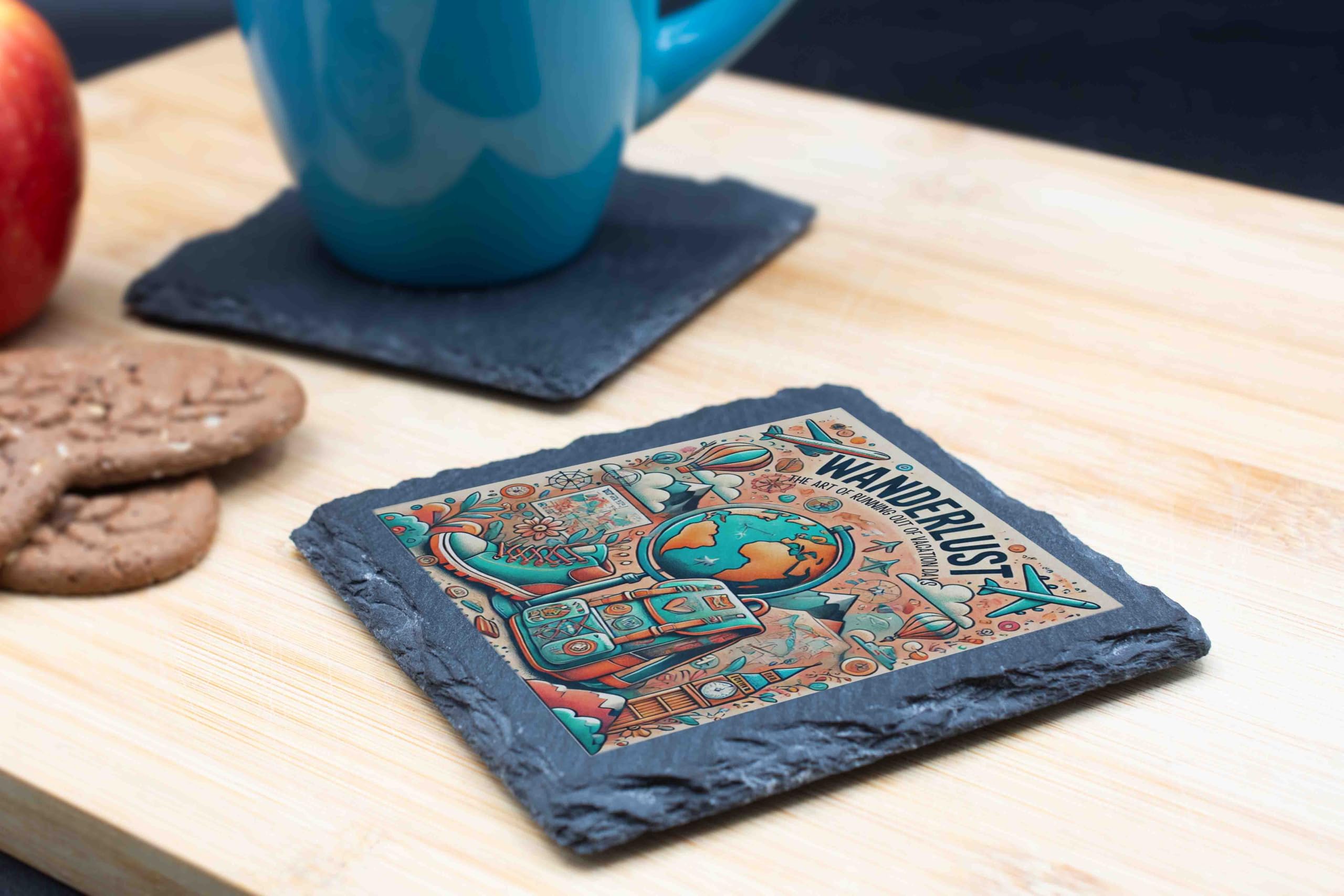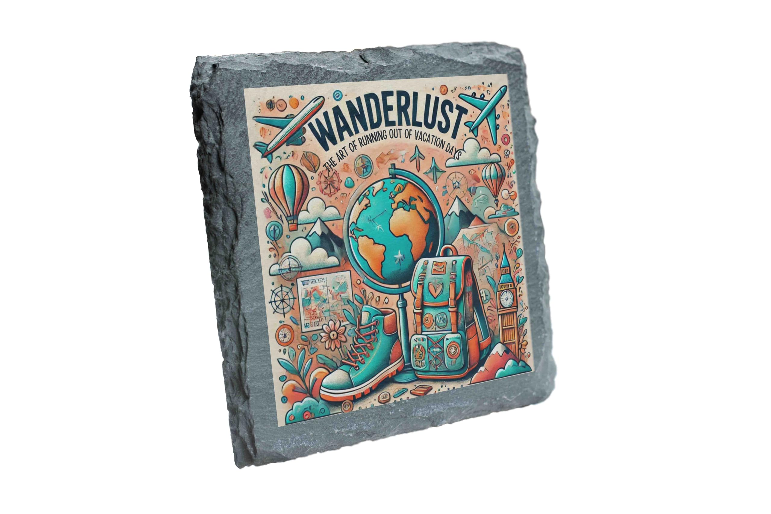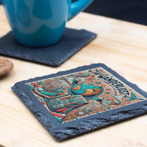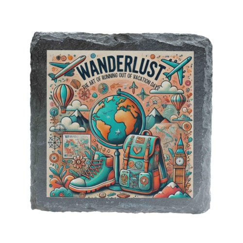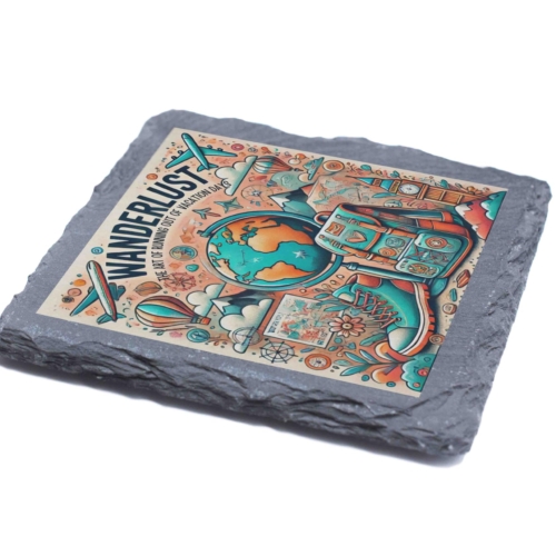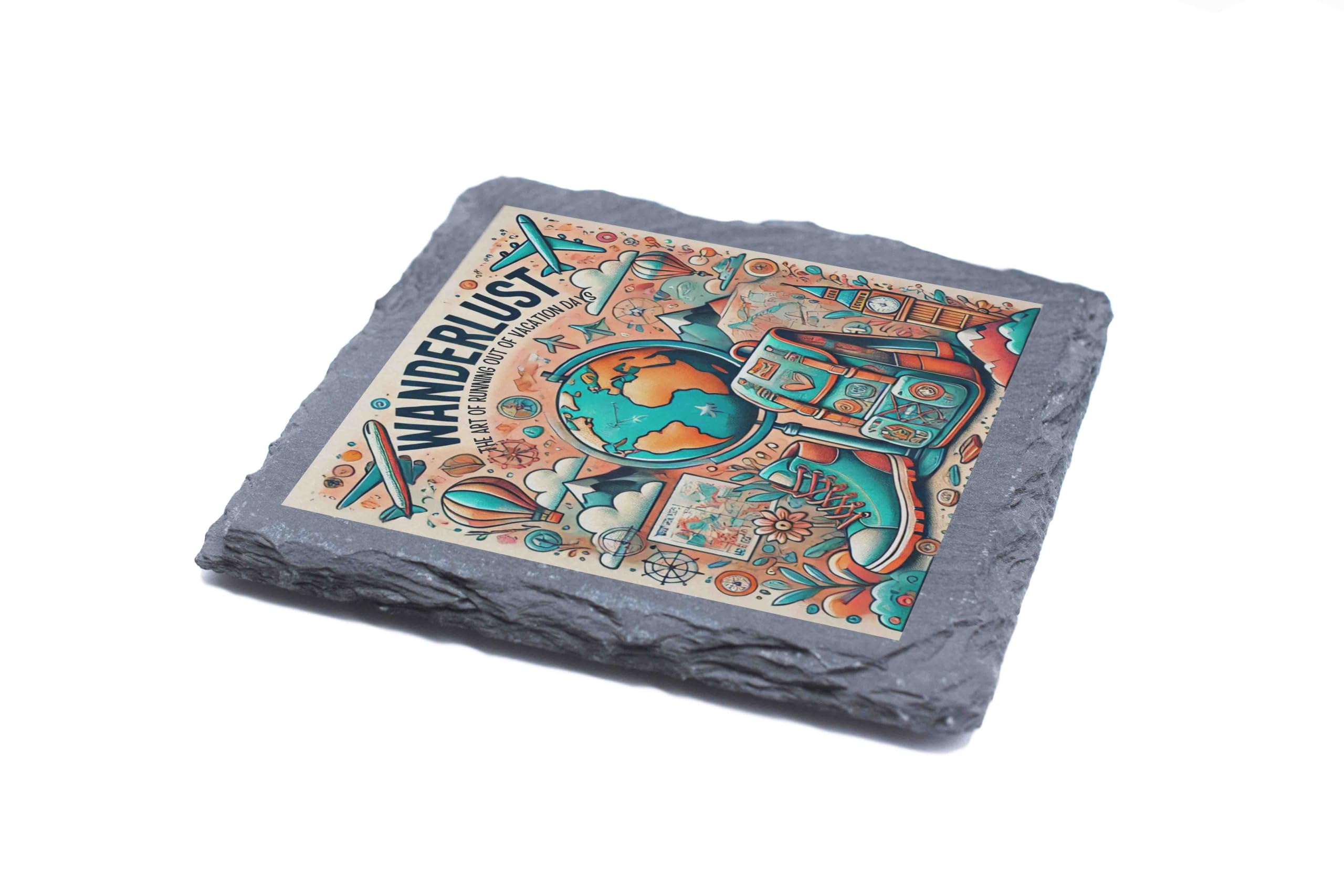 Ignite your sense of adventure with this eye-catching slate coaster, featuring a dynamic travel-inspired design that celebrates wanderlust and the joy of exploring the world. With its vibrant illustration of globes, airplanes, and travel essentials, this coaster is a must-have for anyone with a passion for adventure. Crafted from premium-quality natural slate, it offers both functionality and aesthetic appeal, protecting surfaces while sparking dreams of far-off destinations. A perfect gift for travelers, this coaster brings the spirit of exploration right to your table. Whether you’re sipping coffee or planning your next getaway, let this coaster remind you of the adventures that await! Vibrant Travel Artwork: Showcases a colorful and detailed travel-themed design with globes, airplanes, and adventure icons. Premium Quality Slate: Made from durable, natural slate for a unique and stylish finish. Perfect Gift for Travelers: Ideal for globetrotters, adventurers, and those with a love for wanderlust. Functional and Stylish: Protects your surfaces while adding a touch of travel inspiration to your home or workspace. One-of-a-Kind Design: Each coaster retains its natural slate texture, making every piece unique.