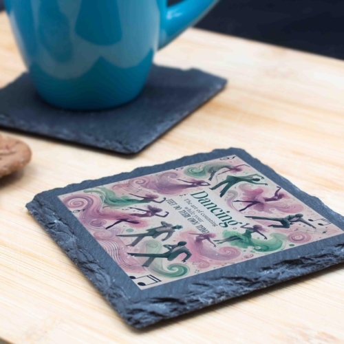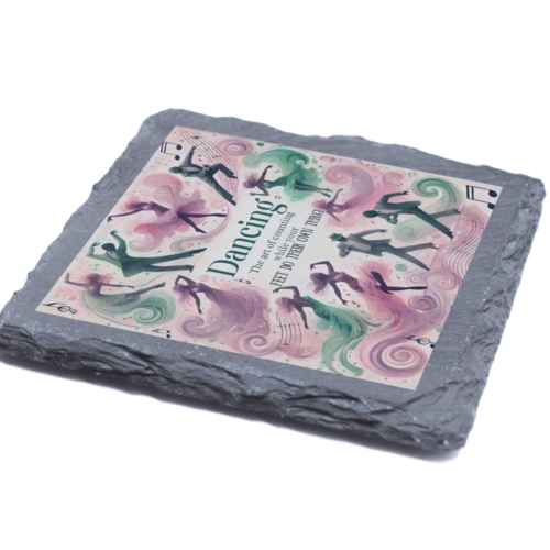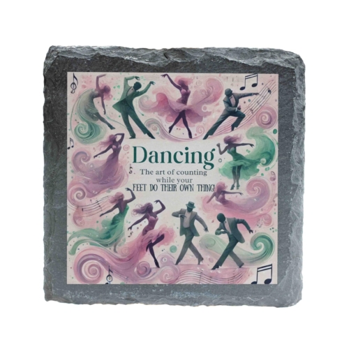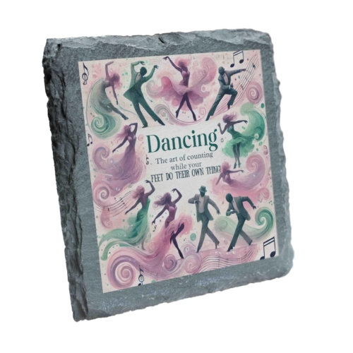 Celebrate the joy of movement with this Slate Coaster with Dancing Illustration, designed for dance enthusiasts and humor lovers alike. The coaster showcases a beautifully artistic depiction of dancers in motion, complemented by the playful quote, “Dancing: The Art of Counting While Feet Do Their Own Thing.” Made from high-quality natural slate, this coaster not only protects your surfaces but also adds a touch of elegance and whimsy to your decor. Whether you’re sipping a drink post-rehearsal or looking for the perfect gift for a dancer, this coaster is both practical and charming. Artistic Dance Design: Features elegant illustrations of dancers in flowing movements, with the whimsical quote, “Dancing: The Art of Counting While Feet Do Their Own Thing.” Premium Slate Material: Handcrafted from natural slate for a unique, durable, and rustic finish. Perfect for Dance Lovers: A charming addition to any dancer’s home decor, celebrating the joy and humor of dance. Thoughtful Gift Idea: Ideal for birthdays, recitals, or as a token of appreciation for dancers, instructors, or dance enthusiasts. Functional and Stylish: Protects surfaces from spills and scratches while serving as a fun decorative accent.