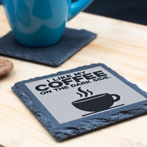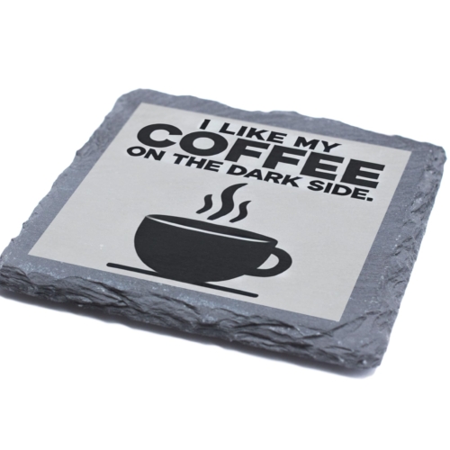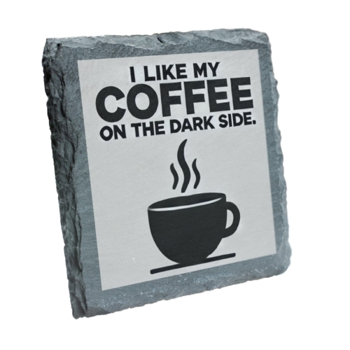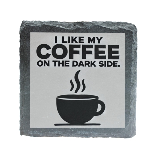 Combine your love for coffee and a touch of humor with this premium slate coaster, featuring the clever phrase “I Like My Coffee on the Dark Side.” Crafted from natural slate, this coaster not only protects your furniture but also brings a chic, rustic vibe to your coffee nook or living space. Ideal for coffee aficionados and those with a sense of humor, this coaster makes a fantastic gift for birthdays, holidays, or just because. Whether you’re sipping on a dark roast or your favorite espresso, this coaster is here to accompany your coffee moments in style. Playful Design: Features the witty phrase “I Like My Coffee on the Dark Side” with a minimalist coffee cup illustration. High-Quality Material: Made from durable, natural slate for a sleek and rustic aesthetic. Protects Surfaces: Shields your furniture from spills, heat, and scratches while adding a stylish touch. Perfect Gift Idea: Ideal for coffee enthusiasts, Star Wars fans, or anyone who enjoys a touch of humor with their brew. Versatile Use: Perfect for coffee tables, office desks, or kitchen counters, making it a great conversation starter.