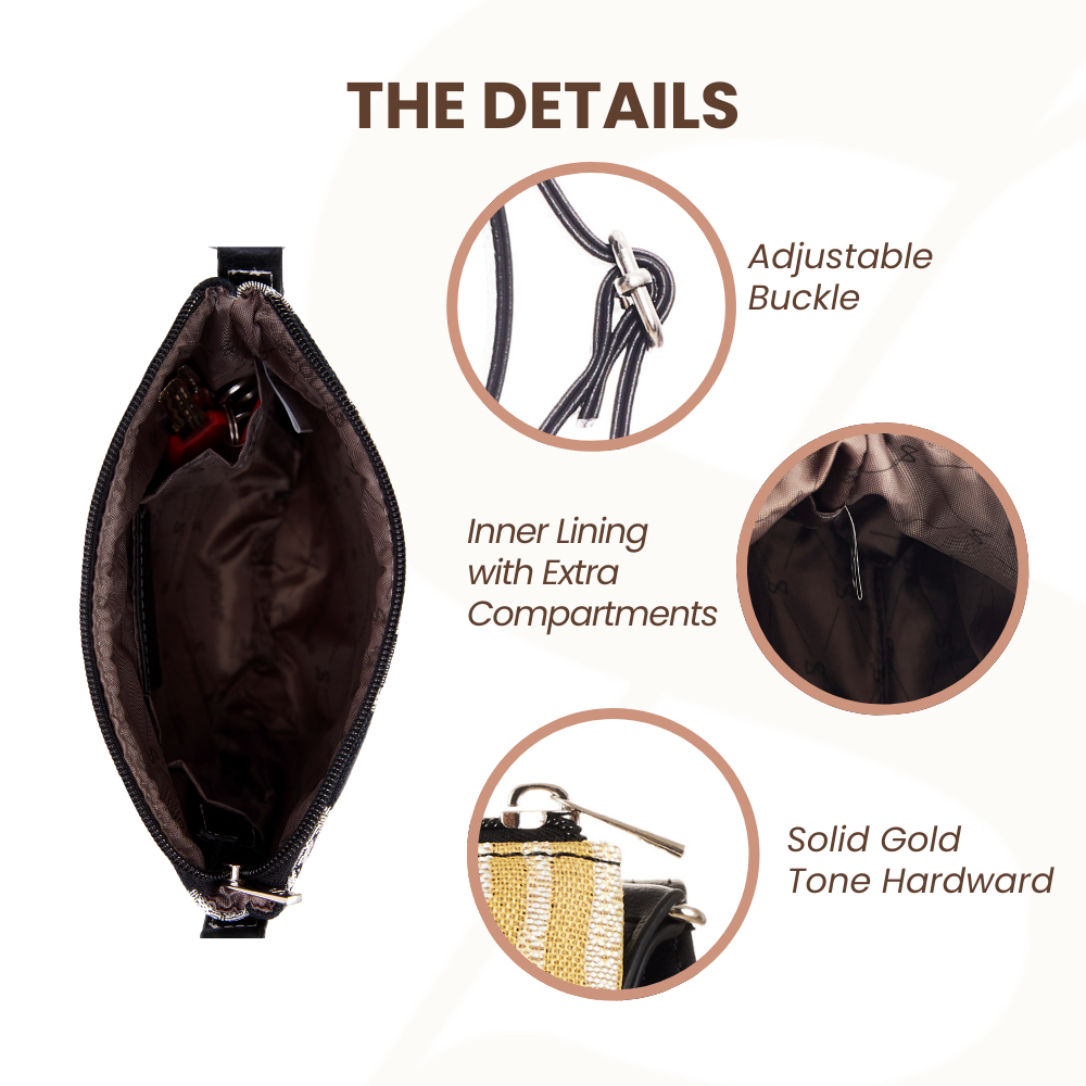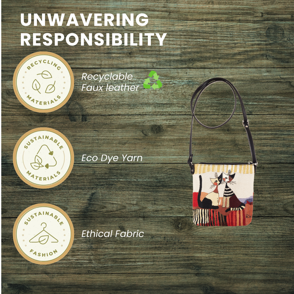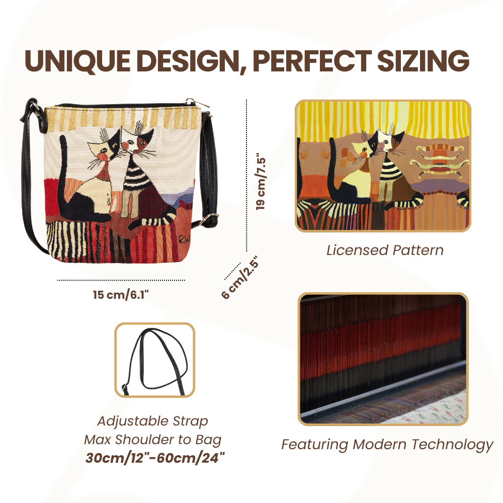 FABRIC COMPOSITION: 100% Polyester.EASY CARE: Clean it with a damp cloth. Do not soak in water.Enjoy your day with branded sling bags by Signare.[custom_html]PRODUCT DESCRIPTION: Tapestry travel bag designed to contain plenty of storage for your travels, this holdall proves to be an ideal choice as a travel companion. If you fancy a very casual and compact bag, this tapestry fabric sling bag is for you. It is ideal for holding your travel documents when on holiday Wear it on its own or as an add-on to your other handbag Fastened with a zip top to protect your goods Adjustable webbing strap, Max shoulder strap drop approx 21″. Features an inside slip pocket and lined with a patterned nylon Can be worn across the body or on your shoulder Product dimensions approx. W6.1″ x H 7.5″ x D 2.5″ Weight: 0.3 lb [/custom_html]