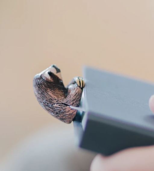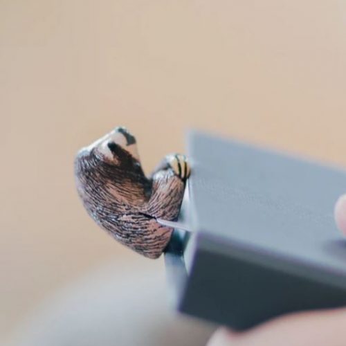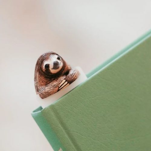 The Sloth’s bookmark is made of polymer clay, flawlessly painted with acrylic paint and finished with a varnish to seal and protect. They are attached to a hard-laminated cardboard bookmark with the inscription.