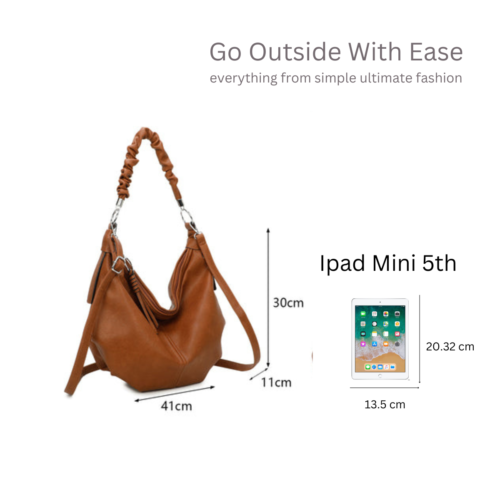Your new go-to accessory for everyday elegance. This bag combines the relaxed, slouchy vibe of a hobo with the sleek sophistication of PU leather. It’s spacious enough to carry all your daily necessities, yet stylish enough to complement any outfit.Dimension :30cm x 11cm x 41cmMaterial: High quality PU leather Interior : SpaciousHandles: Top handle with additional long strapClosure/Opening: Zipper