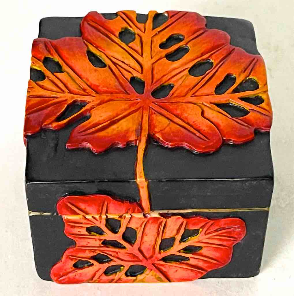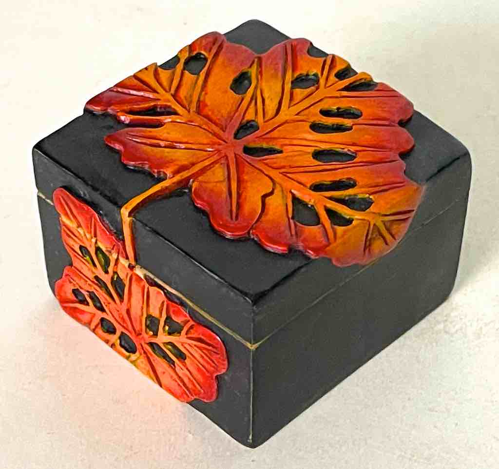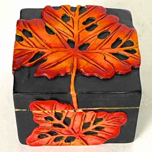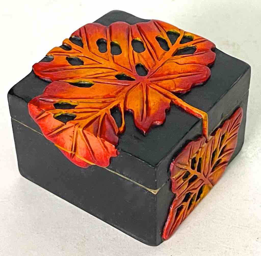 Soapstone is a soft rock that is capable of being carved and etched to great deal without fracturing. It is mined in the mountains of Quang Ninh in northern Viet Nam. Each box is a symbol of both the aesthetics and talent of the Vietnamese artisans. The soapstone is designed, carved and painted to produce a complete masterpiece. Each box consists of a variety of colors and shades, lines and curves, shapes and sizes which are handled with care by many different artisans. Every box takes hours to finish ultimately to become a one of a kind piece, truly a reflexion of the character of Vietnam you cannot find anywhere else. Though it is rock, the soapstone is fragile and will break if it is dropped. It will be shipped to you in a box surrounded by bubble-wrap to ensure its safety. This box measures 6 x 6 x 4 cm (2.4 x 2.4 x 1.6″)