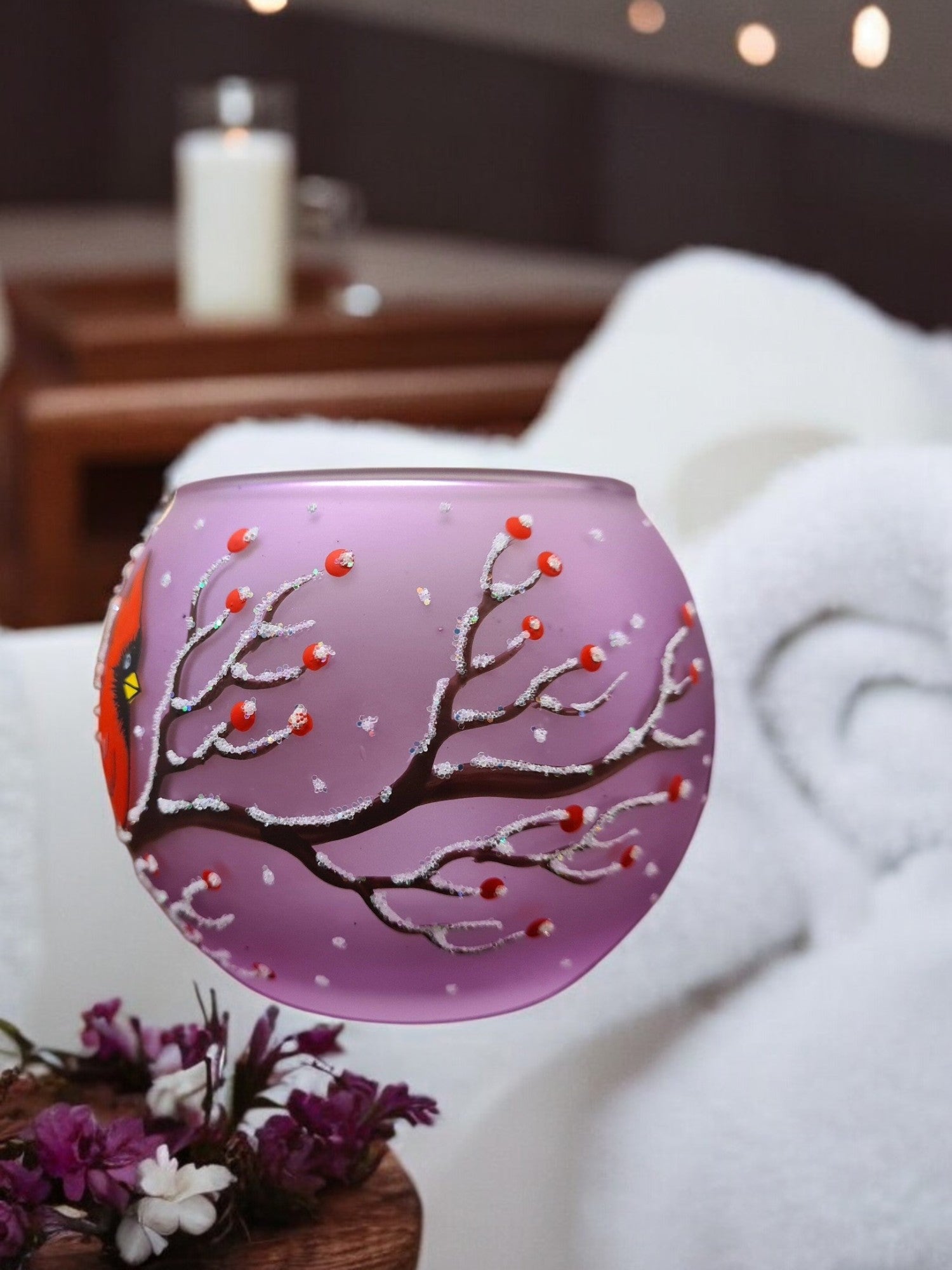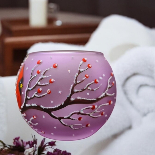 • Handcrafted In L’Viv Oblast, Ukraine• Mouth Blown Glass• Hand Painted – Stencil Free• Wraparound Design Means There’s Always Something To See• Individually Boxed (A Unique Piece Of Glass Art In Every Box)• Small is Approximately 2″ Tall and 2.5″ Wide• Ships From Greensburg, PA• 1 Day Order Processing• A Gift That Will Be CherishedBrighten your space with the enchanting glow of our hand-painted blown glass candle holders. Featuring a intricate red cardinal design, each piece is a testament to exquisite Ukrainian craftsmanship. Perfectly sized for tea lights, this unique holder adds a touch of elegance and artistry to any room. Whether you’re seeking a centerpiece for a cozy evening or a thoughtful gift, this candle holder brings warmth and beauty to your home decor. This candle holder can accommodate 1 tea light. Each piece is hand painted and we take great pride in our attention to details. Makes a wonderful gift, especially for those looking for something unique! Each of our blown glass pieces is hand painted with skill, precision and love. While some prefer to use battery operated candles the best results are achieved using a real candle**. These candle holders are designed to accommodate tea lights. Large about 4″ tall and 4.5″ wideMedium about 3″ tall and 4″ wideSmall about 2″ tall and 2.5″ wide **Please note the candle holders are hand painted on the outside, so please do not allow them to get wet as water can damage the finish. To remove any wax we suggest a plastic butter-knife or a finger nail to scrape and a napkin or towel to wipe the inside. Please be gentle. Perfect for Christmas, Easter, New Years, Birthdays, Anniversaries, Graduations, Valentine’s Day, Mothers Day, or celebrate a House Warming. Embrace the artistry of glass candle holder, a timeless handcrafted gift. Please allow for slight variances as each piece is unique, just like you. Note: The listed price is for a single candle holder Made In Ukraine