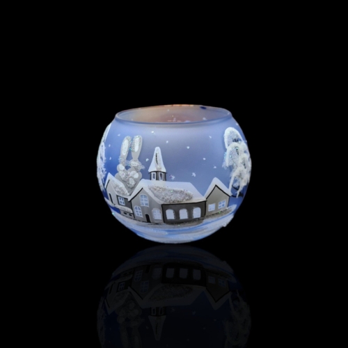 • Handcrafted In L’Viv Oblast, Ukraine• Mouth Blown Glass• Hand Painted – Stencil Free• Etched Out Windows Allow You To See Right Inside When The Candle Is Lit – Truly Beautiful• Wraparound Design Means There’s Always Something To See• Individually Boxed (A Unique Piece Of Glass Art In Every Box)• Small is Approximately 2″ Tall and 2.5″ Wide• Ships From Greensburg, PA• 1 Day Order Processing• A Gift That Will Be CherishedBrighten your space with the enchanting glow of our hand-painted blown glass candle holders. Featuring a delicate White Cabins design, each piece is a testament to exquisite Ukrainian craftsmanship. Perfectly sized for tea lights, this unique holder adds a touch of elegance and artistry to any room. Whether you’re seeking a centerpiece for a cozy evening or a thoughtful gift, this candle holder brings warmth and beauty to your home. Each piece is hand painted with skill, precision and love. We take great pride in our attention to details. Makes a wonderful gift, especially for those looking for something unique! While some prefer to use battery operated candles the best results are achieved using a real candle**. These candle holders are designed for tea lights, but can accommodate larger sizes as well. Large about 4″ tall and 4.5″ wideMedium about 3″ tall and 4″ wideSmall about 2″ tall and 2.5″ wide **Please note the candle holders are hand painted on the outside, so please do not allow them to get wet as water can damage the finish. To remove any wax we suggest a plastic butter-knife or a finger nail to scrape and a napkin or towel to wipe the inside. Please be gentle. Perfect for Christmas, Easter, New Years, Birthdays, Anniversaries, Graduations, Valentine’s Day, Mothers Day, or celebrate a House Warming. Embrace the artistry of glass candle holders, a timeless handcrafted gift. Please allow for slight variances as each piece is unique, just like you! Note: The listed price is for a single candle holder. Made in Ukraine