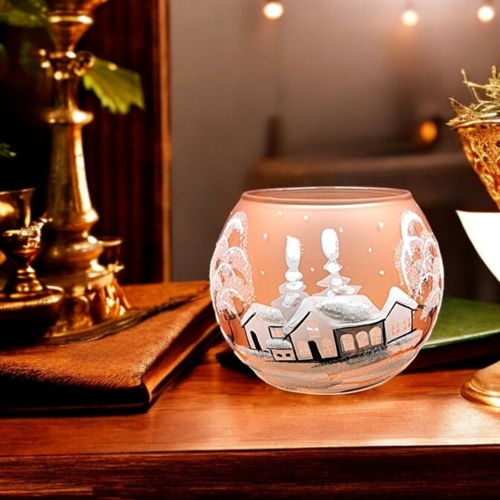 • Handcrafted In L’Viv Oblast, Ukraine• Mouth Blown Glass• Hand Painted – Stencil Free• Etched Out Windows Allow You To See Right Inside When The Candle Is Lit – Truly Beautiful• Wraparound Design Means There’s Always Something To See• Individually Boxed (A Unique Piece Of Glass Art In Every Box)• Small is Approximately 2″ Tall and 2.5″ Wide• Ships From Greensburg, PA• 1 Day Order Processing• A Gift That Will Be CherishedBrighten your space with the enchanting glow of our hand-painted blown glass candle holders. Featuring a intricate White Cottages design, each piece is a testament to exquisite Ukrainian craftsmanship. Perfectly sized for tea lights, this unique holder adds a touch of elegance and artistry to any room. Whether you’re seeking a centerpiece for a cozy evening or a thoughtful gift, this candle holder brings warmth and beauty to your home decor. This candle holder can accommodate 1 tea light. Each piece is hand painted and we take great pride in our attention to details. Makes a wonderful gift, especially for those looking for something unique! Each of our blown glass pieces is hand painted with skill, precision and love. While some prefer to use battery operated candles the best results are achieved using a real candle**. These candle holders are designed to accommodate tea lights. Large about 4″ tall and 4.5″ wideMedium about 3″ tall and 4″ wideSmall about 2″ tall and 2.5″ wide **Please note the candle holders are hand painted on the outside, so please do not allow them to get wet as water can damage the finish. To remove any wax we suggest a plastic butter-knife or a finger nail to scrape and a napkin or towel to wipe the inside. Please be gentle. Perfect for Christmas, Easter, New Years, Birthdays, Anniversaries, Graduations, Valentine’s Day, Mothers Day, or celebrate a House Warming. Embrace the artistry of glass candle holder, a timeless handcrafted gift. Please allow for slight variances as each piece is unique, just like you. Note: The listed price is for a single candle holder Made In Ukraine