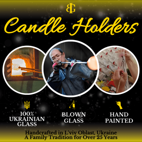 • Handcrafted In L’Viv Oblast, Ukraine• Mouth Blown Glass• Hand Painted – Stencil Free• Etched Out Windows Allow You To See Right Inside When The Candle Is Lit – Truly Beautiful• Wraparound Design Means There’s Always Something To See• Individually Boxed (A Unique Piece Of Glass Art In Every Box)• Small is Approximately 2″ Tall and 2.5″ Wide• Ships From Greensburg, PA• 1 Day Order Processing• A Gift That Will Be CherishedBrighten your space with the enchanting glow of our hand-painted blown glass candle holders. Featuring a intricate White Cabins design, each piece is a testament to exquisite Ukrainian craftsmanship. Perfectly sized for tea lights, this unique holder adds a touch of elegance and artistry to any room. Whether you’re seeking a centerpiece for a cozy evening or a thoughtful gift, this candle holder brings warmth and beauty to your home decor. This candle holder can accommodate 1 tea light. Each piece is hand painted and we take great pride in our attention to details. Makes a wonderful gift, especially for those looking for something unique! Each of our blown glass pieces is hand painted with skill, precision and love. While some prefer to use battery operated candles the best results are achieved using a real candle**. These candle holders are designed to accommodate tea lights. Large about 4″ tall and 4.5″ wideMedium about 3″ tall and 4″ wideSmall about 2″ tall and 2.5″ wide **Please note the candle holders are hand painted on the outside, so please do not allow them to get wet as water can damage the finish. To remove any wax we suggest a plastic butter-knife or a finger nail to scrape and a napkin or towel to wipe the inside. Please be gentle. Perfect for Christmas, Easter, New Years, Birthdays, Anniversaries, Graduations, Valentine’s Day, Mothers Day, or celebrate a House Warming. Embrace the artistry of glass candle holder, a timeless handcrafted gift. Please allow for slight variances as each piece is unique, just like you. Note: The listed price is for a single candle holder Made In Ukraine