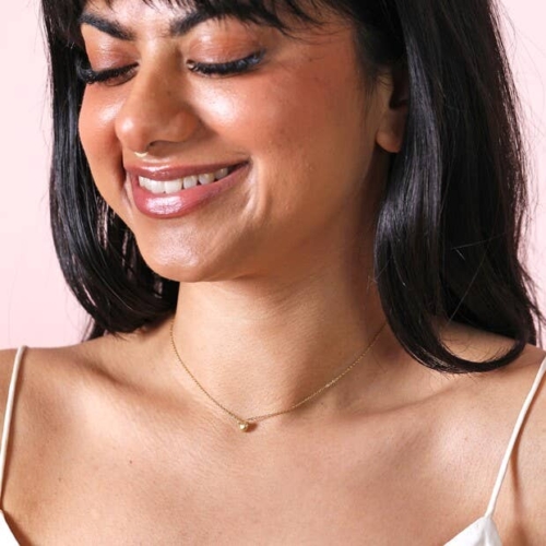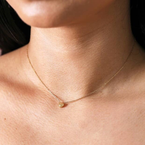 Simple in design, this delicate piece is made of gold plated stainless steel. Featuring a golden trace chain attached on each side to a heart pendant, this mini charm has a rounded finish.Dimensionsnecklace length – 40cm (15.7″) with a 5cm extender chainheart charm – width 5mm x height 5mmMade from14ct gold plated stainless steel