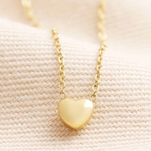 Simple in design, this delicate piece is made of gold plated stainless steel. Featuring a golden trace chain attached on each side to a heart pendant, this mini charm has a rounded finish.Dimensionsnecklace length – 40cm (15.7″) with a 5cm extender chainheart charm – width 5mm x height 5mmMade from14ct gold plated stainless steel