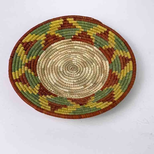 This basket/bowl is one of the thinnest coil and therefore finest quality woven basket in Africa. The design is among the most intricate, demonstrating the very advanced skill of the women who make these in Uganda, near the Ruwenzori Mountains. This one is relatively small which affords the woman who made it to show off her exceptional basket weaving ability at a lower cost. We think these are the most beautiful and finest quality baskets we have ever seen, reflecting the unbelievable ingenuity of these amazing Ugandan artisans. Locally available natural dyes are used to create the vibrant colors which contribute to the beauty of these baskets This basket measures 5 3/8″ in diameter x 5/8″ deep.