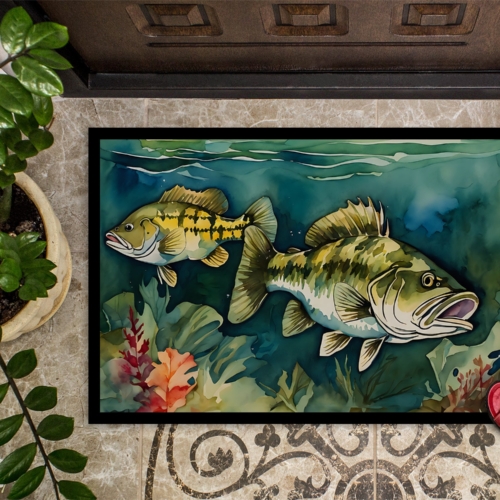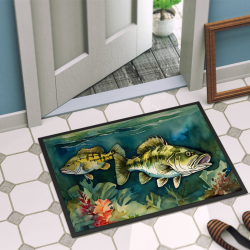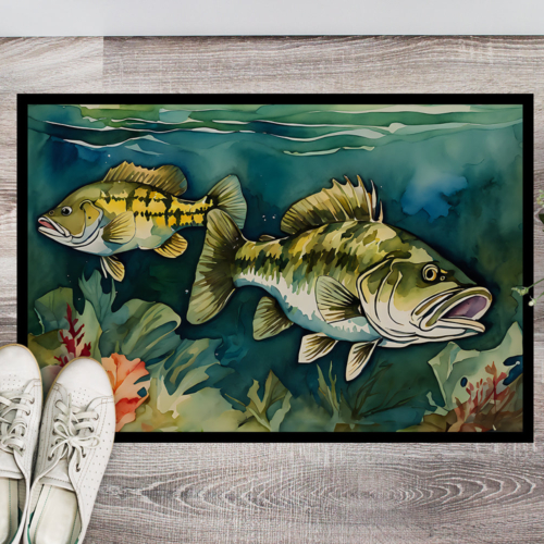 Doormat featuring breed specific Smallmouth Bass artwork. Welcome your guests in style with our Artwork Door Mat, designed to withstand almost any weather condition. This mat, measuring approximately 18 by 27 inches, is held together by durable black binding tape. Its top layer, composed of polyester felt, is dyed with the eye-catching image you see on the mat. A few layers below provide the mat with stability, while its rubber bottom is stamped to help prevent slipping and ensures safety. Our mat works wonderfully as both an indoor or outdoor door mat. For cleaning, simply hose it off with water or use a power washer – no need for any cleaner that produces suds. Avoid scrubbing with a brush, instead, opt for the vacuum on floor setting. Designed manufactured and printed in the USA, this mat is a perfect addition to your porch, outdoor kitchen, entryway, or any indoor space. Its unique design makes it a charming decorative rug that greets your guests and adds a stylish touch to your home decor.