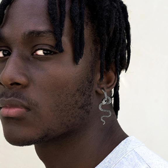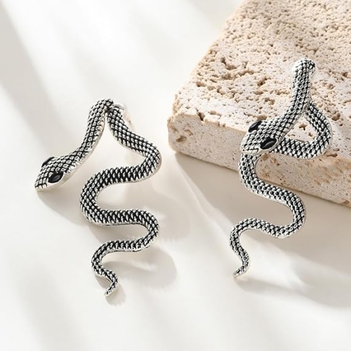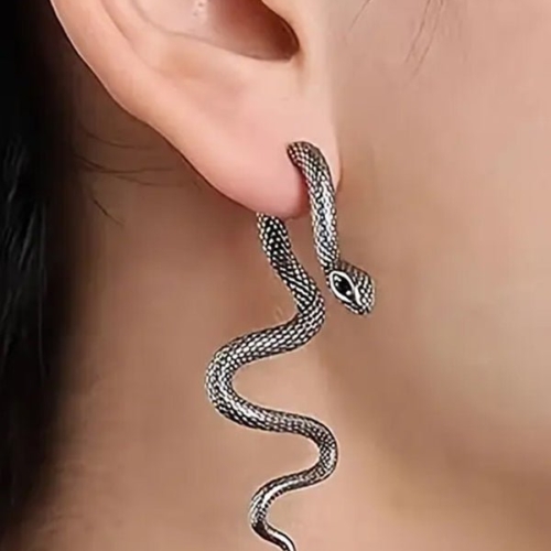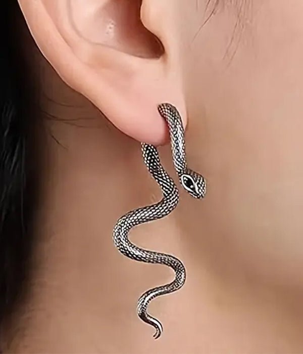 Experience the bold and edgy style of our Snake Earrings, perfect for fans of rock, goth, and hip-hop. These earrings, measuring 2.83 inches in length and 0.945 inches in width, are versatile and suitable for both men and women. Make a statement and add a touch of fierceness to your look with a pair of these snake earrings.