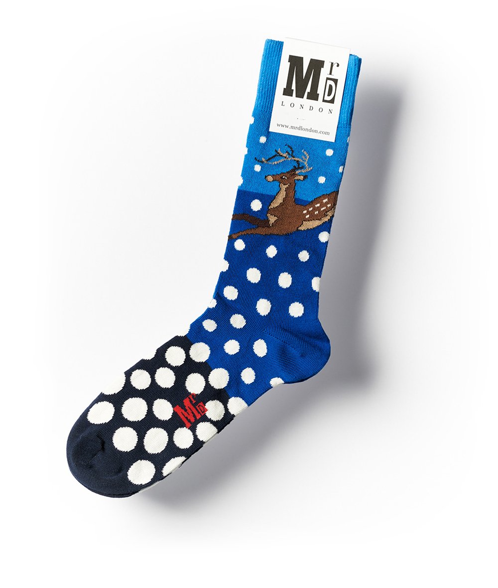 Fine socks for men knitted in quality soft cotton. A broad range of sophisticated, contemporary and fun designs, suitable for complimenting any casual or smart outfit. An extensive, bold colour palette featuring Breton stripes, team stripes, multi stripes, polka dots, bold spots, camouflage and wildlife/nature inspired patterns, also a few tasteful novelty designs. MrD London socks are perfect as a gift or just self endulgence, a must have men’s accessory.