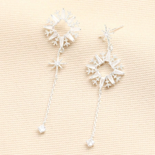 Snowflake studs with star dropLightweight silver chainAdds festive sparkleAdd to a seasonal collection of jewelleryMade from: Brass, Silver Plated