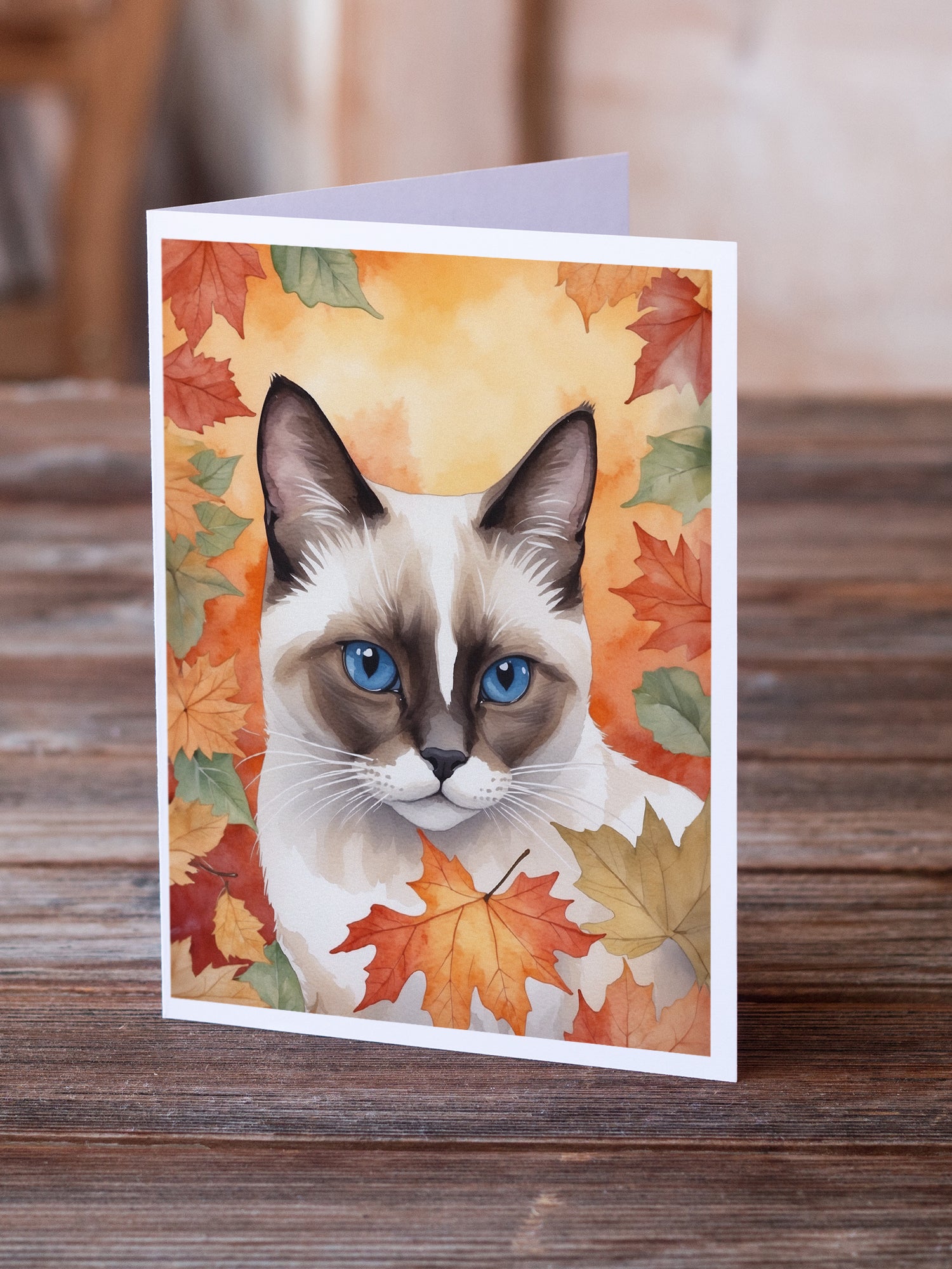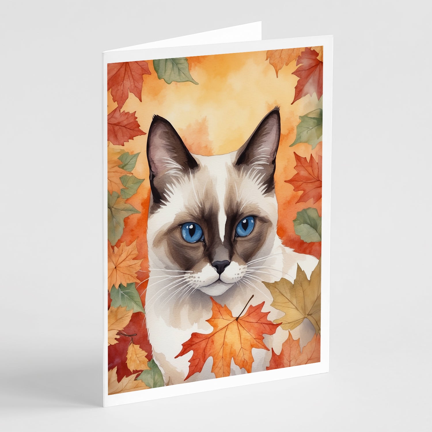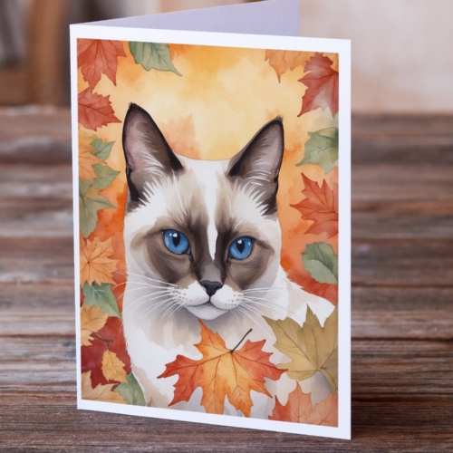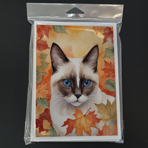 Snowshoe Cat in Fall Leaves Greeting Cards Pack of 8