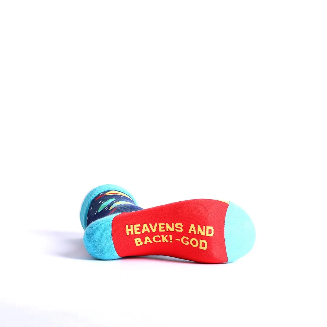 The design features a special message on the bottom of the sock that says I Love you to the Heavens and back – God, reminding us of God’s love wherever we go. These socks are perfect for anyone who wants to make a statement with their accessories while also promoting a positive message.