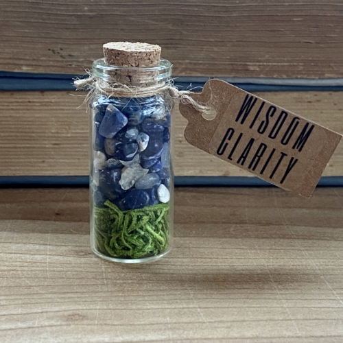 Sodalite brings wisdom and clarity. It is said to calm internal panic and clear the mind, helping one see truth, bringing intuitive awareness.