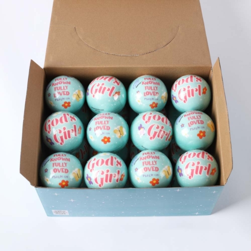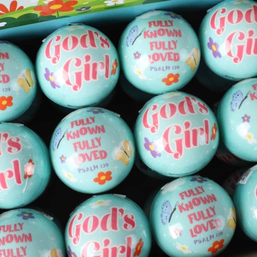 Comes in a display box that measures 11 x 8.25 x 5.5, perfect for easy storage and display, and includes 24 God’s Girl-themed balls.