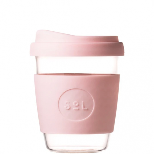 Our beautiful 12oz SoL Cups are 100% hand blown glass and plastic free. Our silicon sleeve and lids are food grade and chemical free. All components are dishwasher and microwave safe. Check out our amazing SoL Pouches for the perfect cup companion to keep your bag spill free.