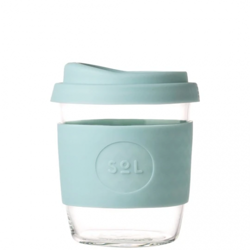 Our beautiful 8oz SoL Cups are 100% hand blown glass and plastic free. Our silicon sleeve and lids are food grade and chemical free. All components are dishwasher and microwave safe.