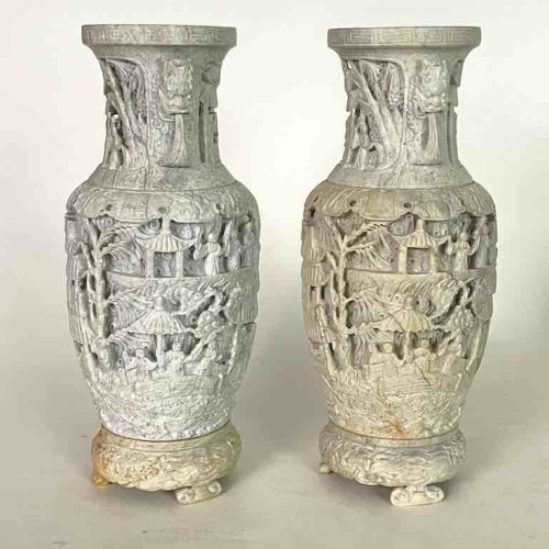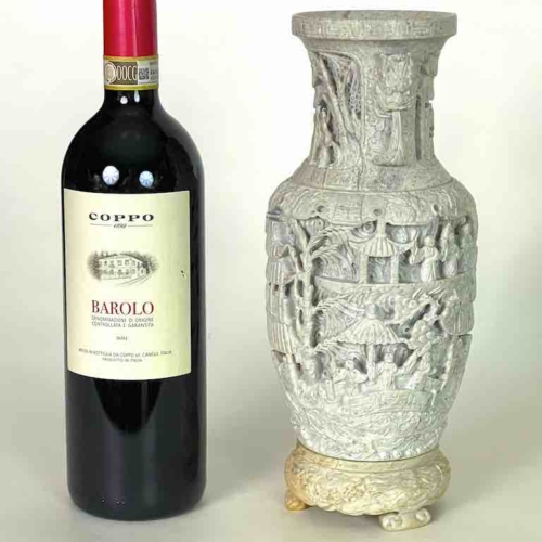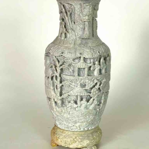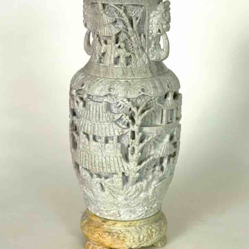 Solid Hand-Carved Soapstone Vietnamese Landscape White Vase