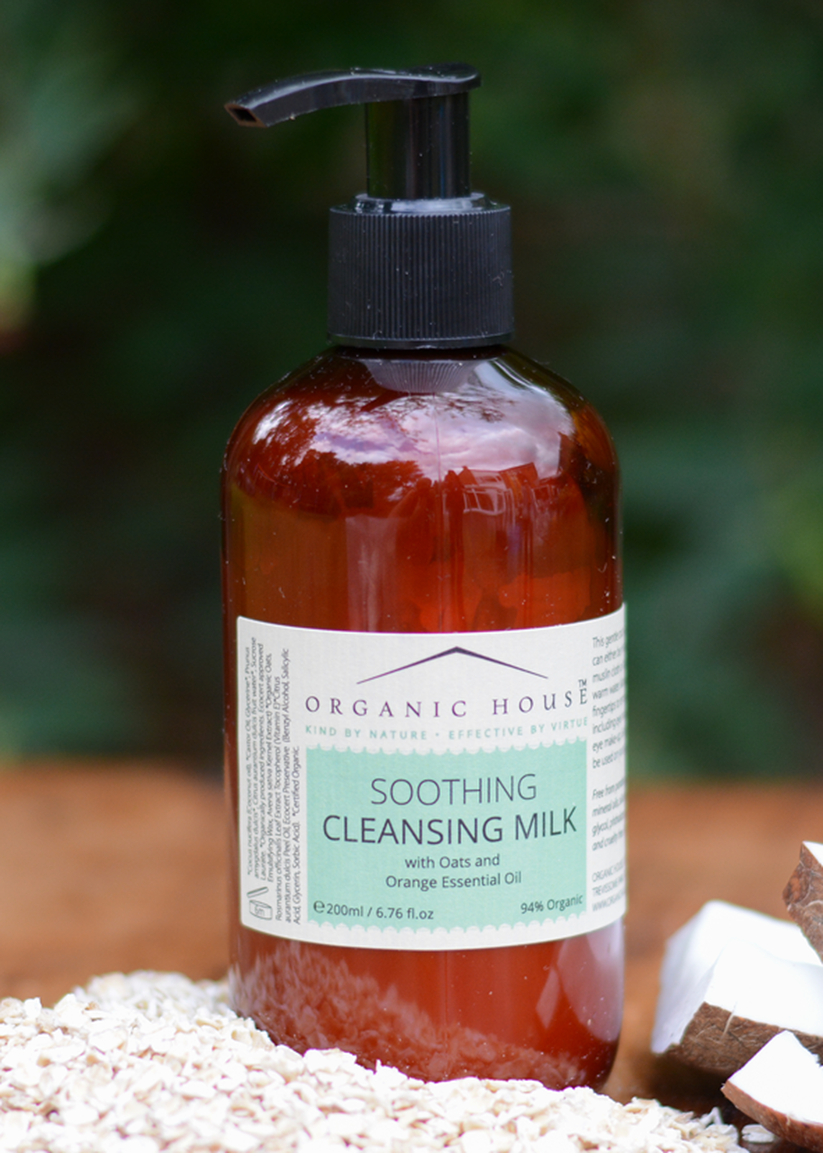 This coconut oil and oat cleanser contain organic flower water that has a light fragrance of fresh oranges. It can be rinsed off or removed with a muslin cloth or face flannel wrung out in warm water. Massage into the skin using fingertips to remove make-up and dirt including eye make-up and waterproof eye make-up.