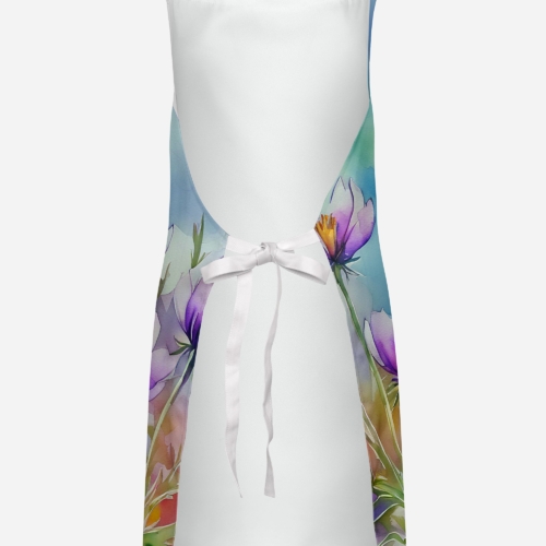 Apron featuring breed specific South Dakota Pasque Flowers artwork. Elevate your cooking, baking, and grilling experiences with our versatile Kitchen or BBQ Apron. This Bib Style apron isn’t just limited to culinary activities – it also serves as an excellent baking apron, artist apron, server apron, gardening apron, or even a dog grooming apron. The apron showcases vibrant full-color artwork contributed by one of our talented artists, bringing a dash of style to your daily tasks. With dimensions of approximately 27″W x 30″H, it provides ample coverage to protect your clothing from spills and splashes. Our apron is meticulously crafted from 100% Ultra Spun Polyester, known for its durability and lightweight nature. The apron comes with white tie straps, ensuring a comfortable and adjustable fit for all. It’s a perfect choice for kitchen apron enthusiasts, whether you are a woman or a man. Designed for easy maintenance, this apron is fully machine washable. The quick-drying polyester material actively reduces staining, keeping your apron looking fresh and new for longer. Our beautifully designed apron isn’t just a functional kitchen accessory – it’s a fashion statement in the culinary world!