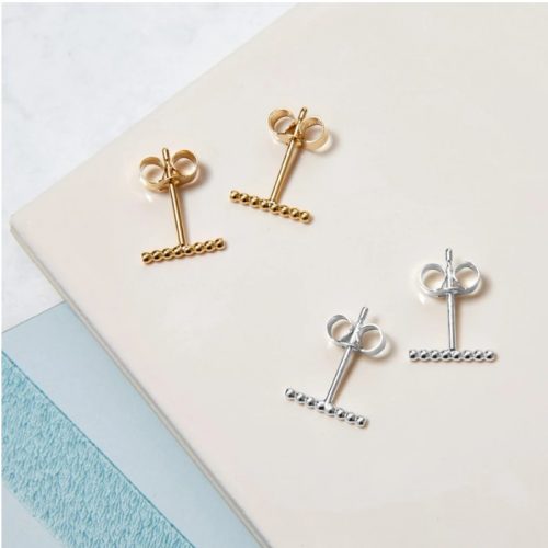 Crafted in 9k yellow gold, the mini sphere bar studs are the perfect addition for any stud lover, these minimal studs can be worn in a range of positions or mixed and stacked up the ear.