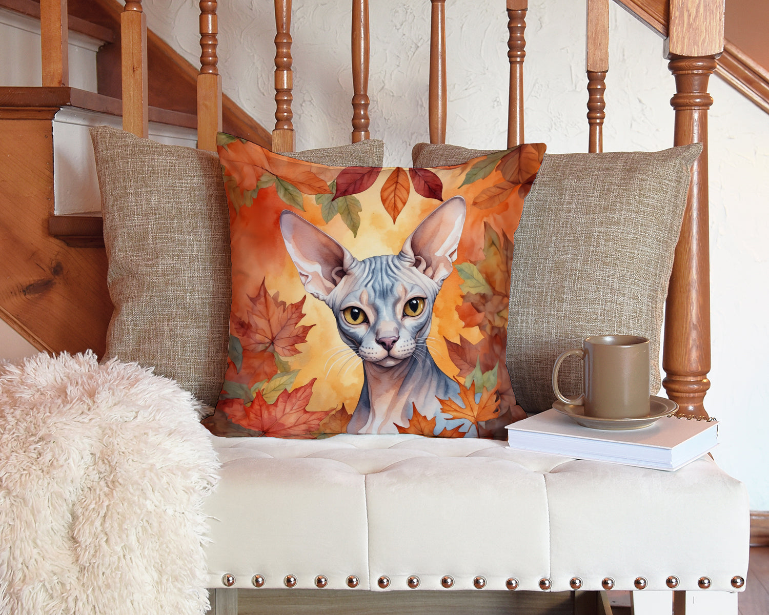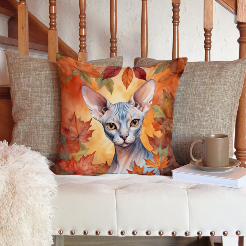Throw Pillow featuring breed specific Sphynx Cat artwork. Celebrate Halloween with this Halloween Pillow. Add a touch of vibrancy and comfort to your outdoor seating with Caroline’s Treasures Fabric Decorative Pillow. Measuring approximately 14 inches by 14 inches, this outdoor pillow is crafted to elevate the appeal of your patio furniture, infusing it with vivid color and artistic flair. The pillow includes a 100% Polyester Fabric sham filled with a quality pillow form to provide superior comfort. Innovatively made from our brand new material, specifically woven for its water resistance, this pillow is designed for durability. The soft canvas fabric offers versatility in use, fit for your indoor couch or your outdoor patio, porch, or veranda. The fabric is dyed with colorfast dyes built for resilience against weather conditions, ensuring the pillow retains its beauty over time. Constructed by sewing three fabric pieces to create a sham, the polyester insert is then nestled inside to form the pillow, resulting in an overstuffed pillow that maintains its shape. Both the sham and the pillow insert are proudly made in the United States. As the pillows are handcrafted, there may be minor variations in size, further enhancing their unique charm. Experience comfort in style with Caroline’s Treasures Fabric Decorative Pillow.