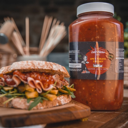 Spicy Tomato chutney – a fiery relish to pair with meats, cheeses, toasted sandwiches and perfect for BBQ’s and burgers. Also pairs well with Indian food and makes a tasty addition to a poppadom & pickle tray.Perfect for deli’s, cafe’s, restaurants, pubs, caterers and food vendorsGluten free, veganComes in cases of two jars