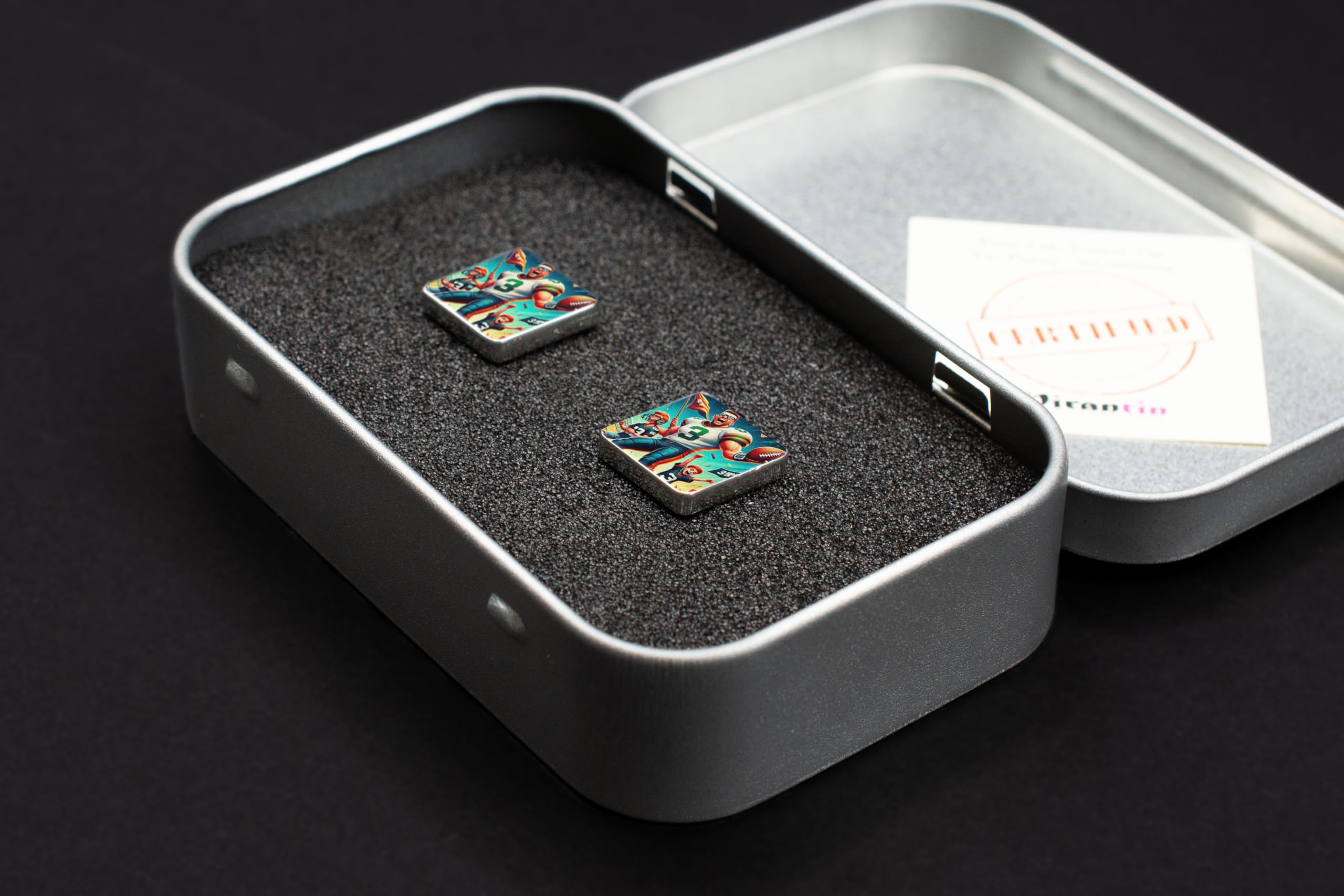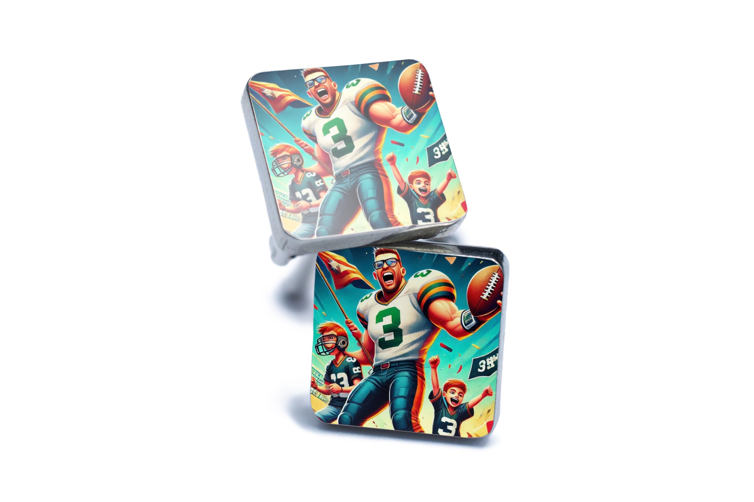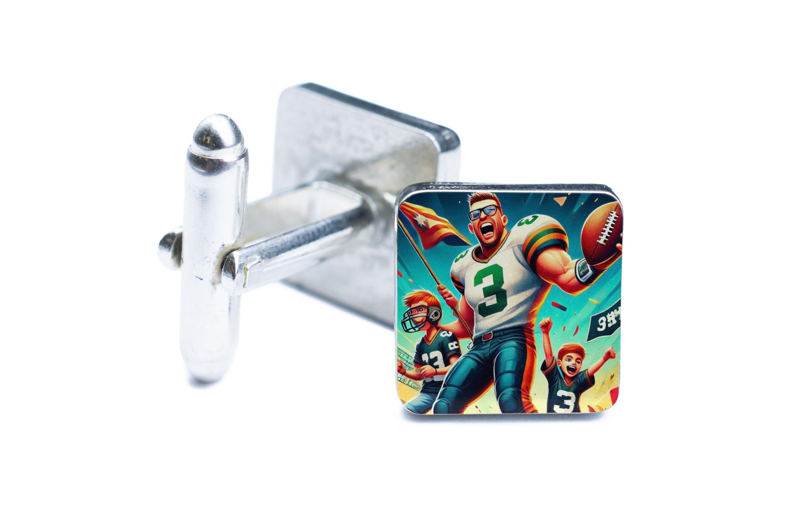 Showcase your passion for sports with these vibrant Sports Champion Cufflinks. Designed for those who live and breathe the game, these cufflinks feature a stunning football-themed illustration that combines boldness with elegance. Crafted from high-quality metal, they offer a polished finish that complements any formal or semi-formal outfit. Whether you’re heading to a wedding, a business event, or a celebratory dinner, these cufflinks add a unique touch of personality and style. They’re not just accessories?they’re a statement of your love for the game. Looking for the perfect gift? These cufflinks make an excellent choice for sports fans, teammates, or coaches. Celebrate every victory and express your sporty side with these standout cufflinks! Eye-Catching Design: Features a bold and colorful football-themed illustration, perfect for sports enthusiasts. High-Quality Craftsmanship: Durable metal construction with a sleek and polished finish for a sophisticated touch. Perfect Gift Idea: An ideal gift for sports fans, coaches, or teammates to celebrate victories or special occasions. Versatile Style: Adds personality to formal attire â perfect for weddings, business meetings, or casual celebrations. Easy to Use: Secure and convenient cufflink fastening ensures a reliable fit every time.