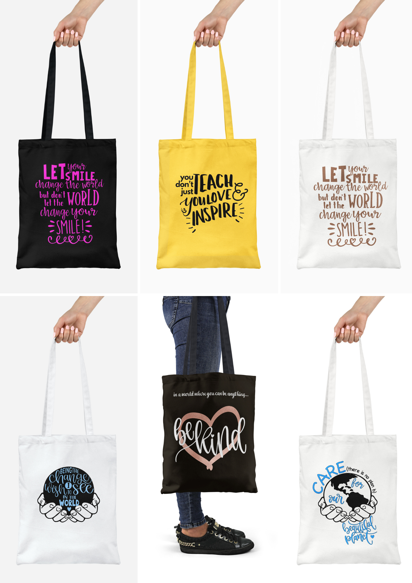 6 x Teach, Love, Inspire Yellow Tote Bag