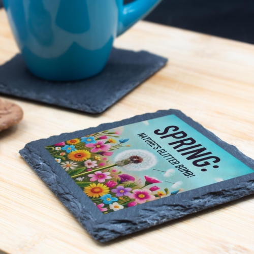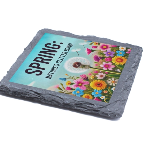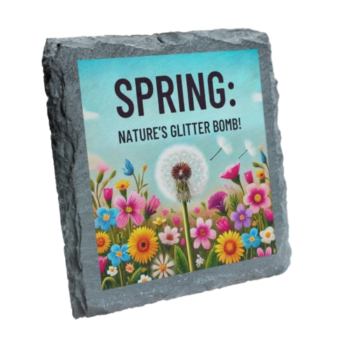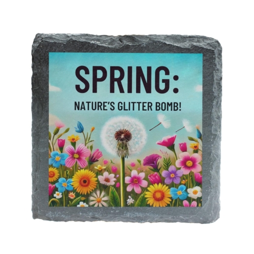 Welcome the joy of spring into your home with the “Spring: Nature’s Glitter Bomb!” Floral Slate Coaster. Designed with a cheerful mix of vibrant flowers and a whimsical dandelion motif, this coaster beautifully represents the lively and refreshing season of renewal. Crafted from premium natural slate, it combines elegance and practicality, offering protection for your surfaces while adding a splash of springtime charm. The fade-resistant print ensures the bold colors and intricate design remain as fresh as a spring morning. Perfect for coffee tables, patios, or garden parties, this coaster is an excellent addition to your seasonal decor or a delightful gift for nature enthusiasts. Celebrate spring in style with this charming and functional accessory! Stunning Spring Design: Captures the essence of spring with a bright and colorful floral arrangement featuring dandelions and vibrant blooms, paired with the playful phrase “Spring: Nature’s Glitter Bomb!” Durable Natural Slate: Made from high-quality slate, this coaster combines rustic charm with robust functionality, perfect for home or outdoor spring gatherings. Protects Surfaces: Provides a reliable barrier against drink condensation, spills, and heat, ensuring your furniture stays pristine. Fade-Resistant Artwork: The vivid and detailed print maintains its quality over time, making it a lasting addition to your spring decor. Ideal Gift for Nature Lovers: Perfect for springtime celebrations, birthdays, or as a thoughtful housewarming gift for anyone who adores seasonal beauty.