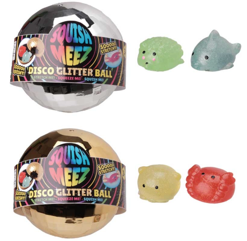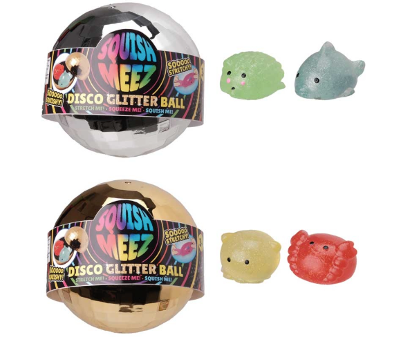 The Disco Glitter Ball is here to light up your playtime! With three colourful disco balls to collect, each one contains the ultimate disco pals-two squishy, cute characters inside that are sure to make your playtime pop. Perfect for sensory fun, these disco balls bring a party to life wherever you go! Shake them, squish them, and enjoy endless fun as you create your own disco party at home. The Disco Glitter Ball is suitable for ages 3 years and up. Please note that assorted products may vary in waves, series and characters from the illustration.