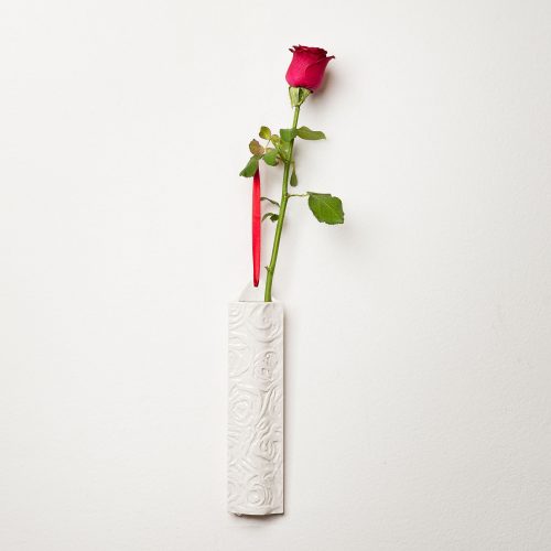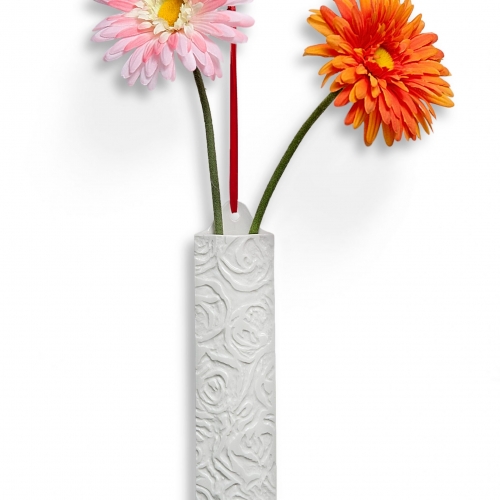 Decorative hanging wall vases, made in porcelain with a rose texture engraved on the surface, A single bud vase for that special bloom?