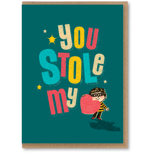 Send love and a big heart to your Valentine with this colourful, retro styled card.