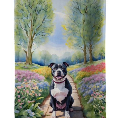 Kitchen Towel featuring breed specific Staffordshire Bull Terrier artwork. Experience the perfect blend of aesthetic appeal and functional excellence with our Plush Velour Kitchen Towels. These are not your ordinary decorative kitchen towels that gather dust. Instead, they are designed to be as practical as they are stylish. The front layer of our towel is constructed from a minky plush polyester, known for its durability and color retention. Unlike conventional kitchen towels, the artwork on our towels is dyed directly into the fabric, ensuring vibrant colors that last. Polish your glassware to a brilliant sparkle using the plush front side of the towel. Flip to the back, crafted from 100% cotton terry loop, to exploit its exceptional absorbency for drying dishes or wiping down counters. Our kitchen towels redefine the concept of functional art, offering lasting quality that maintains the towel’s shape over time. Measuring 15 inches by 25 inches and weighing 2.3 lbs per dozen, these towels deliver an overwhelming sensory experience with their soft, plush, and smooth texture. The edges are meticulously finished with binding, enhancing their durability and visual appeal. For your convenience, these towels are machine washable and can be dried on low heat. After the first wash, the top fabric becomes even softer and fluffier, eliminating the need for ironing. Treat your kitchen to the luxury and functionality it deserves with our plush velour kitchen towels.