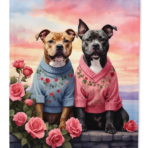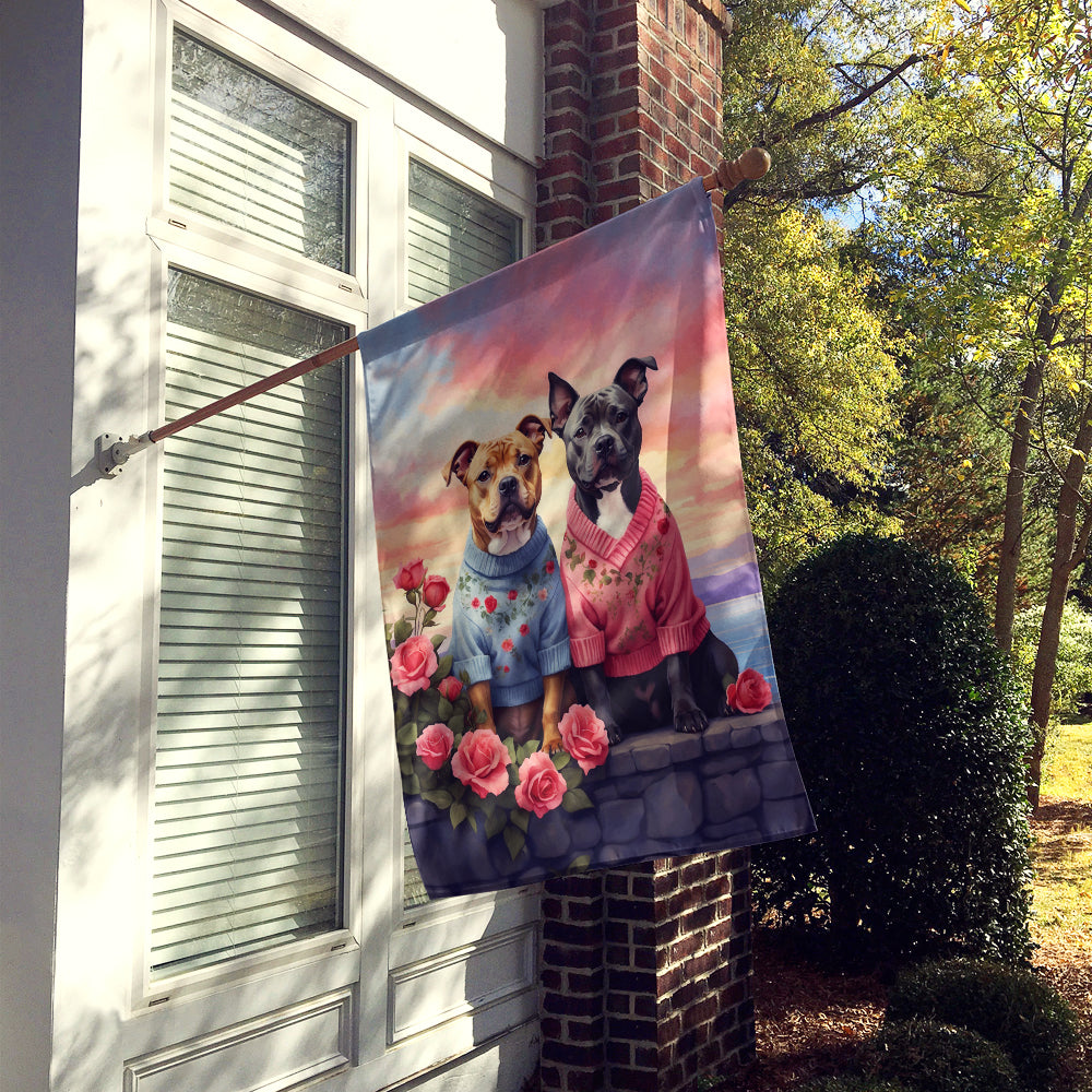 Staffordshire Bull Terrier Two Hearts House Flag