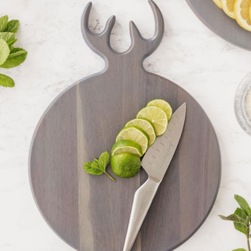 Measuring a majestic 34cm x 25cm, this round serving board is crafted from premium acacia wood and features a carved antler handle that’s both stylish and functional. Perfect for any occasion, the Stag Serving Board brings a touch of rustic elegance to your table, making every meal a grand affair.