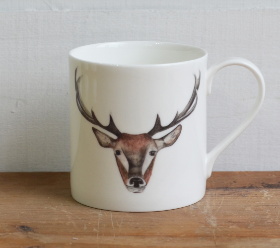 A classic fine bone china mug with original illustration of a Stag’s head by Rachel Dimbleby.