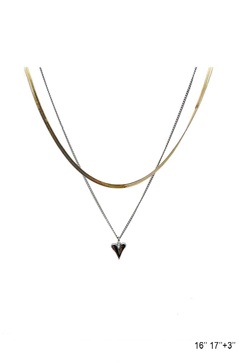 Stainless Layered Snake Chain Heart Necklace
