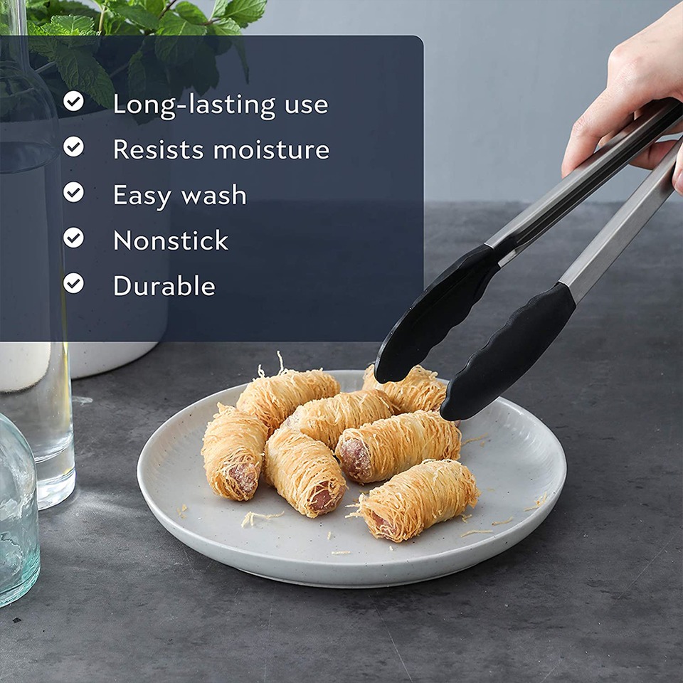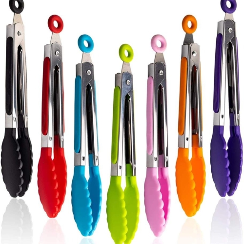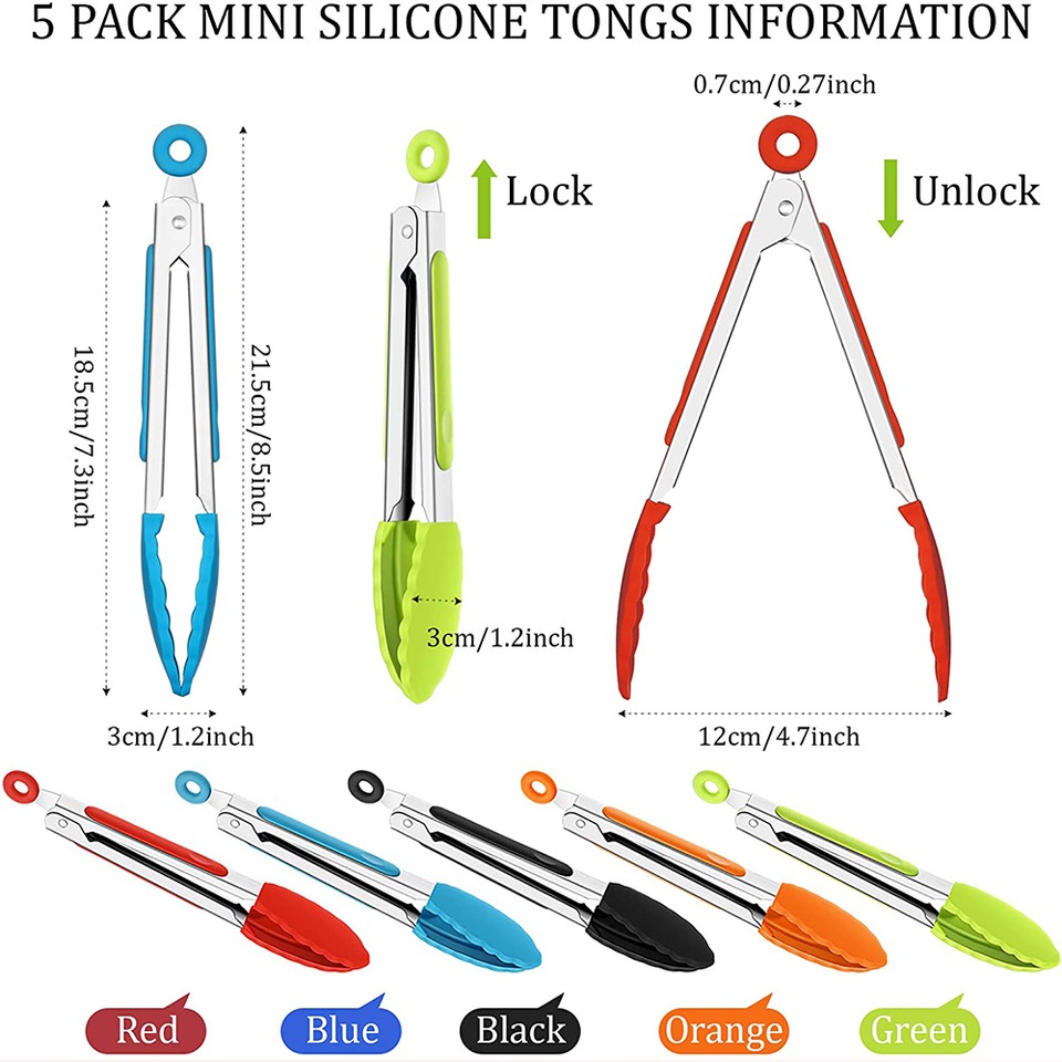 Stainless Steel 7 Inch Silicone Party mini Tong Utensils for personal servings(7 tongs per pack)(10 Pack)
