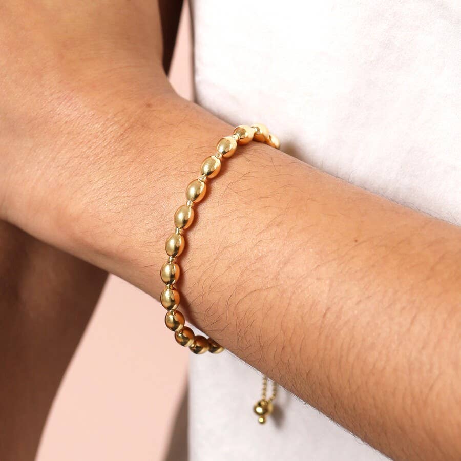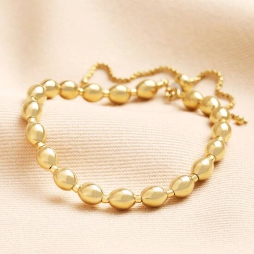A waterproof bracelet made from stainless steelWith gold platingWith an adjustable trace chain pulley claspPerfect for modern jewellery collectionsDimensions: Adjustable smallest circumference 16.5cmlargest circumference 26.7cmMade from: 14ct gold plated stainless steel