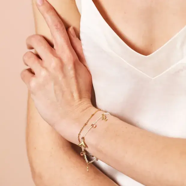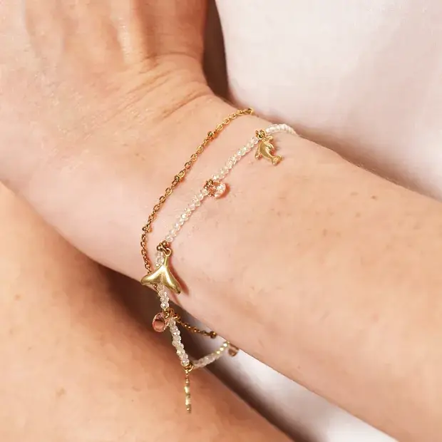 Stainless Steel Double Layer Dolphin Charm Bracelet in Gold