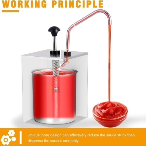 【Large capacity】 Comes with a stainless bucket, the sauce dispenser can hold 3.7Quart sauces. It allows to reduce the repeated refilling and improve working efficiency. The sauce pump can dispenser about 1 ounce each time, no need to press for multiple times.