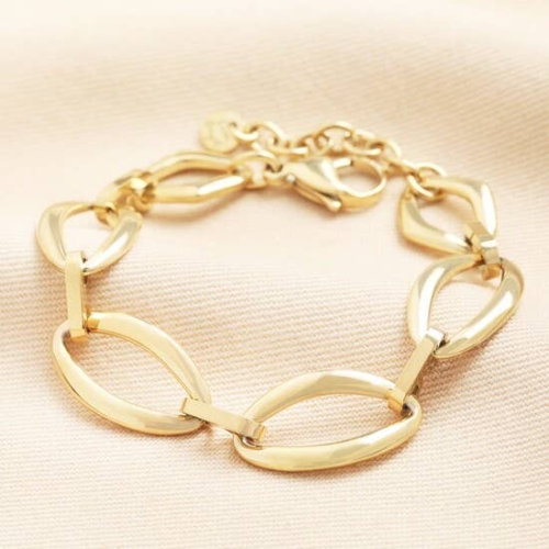 Stainless Steel Large Marquise Link Chain Bracelet in Gold