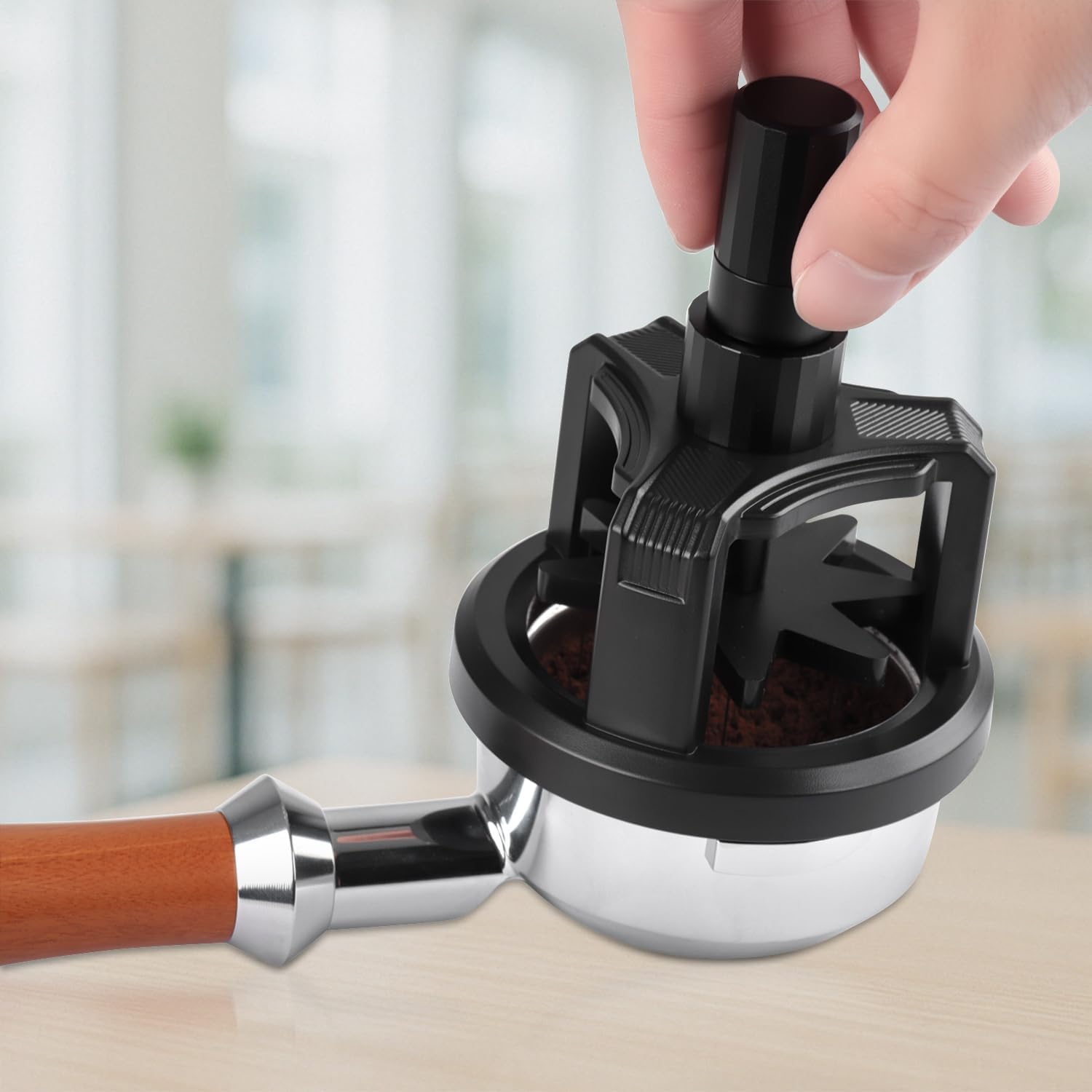 【Unique Spirographic Gears Movement Design】 Five independent gears work in harmony and spin smoothly; 10 needles multiple needle configuration matches with irregular spiral curve movement, just spin 3-5 rotations can achieve optimal stirring, distributing evenly and level, fluffy and no clumping. It promotes better extraction and reduce espresso channeling, and leading to a more nuanced and flavorful cup of coffee