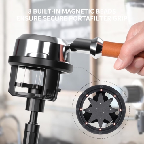 【Universal Locking Closure Design】Can perfectly fit all kinds of material (51,53 mm’s) portafilters, such as stainless steel or anodized aluminum, etc.; and it can also perfectly fit different types of (51,53 mm’s) portafilters, such as 2-ear and 3-ear, etc., avoiding the problem of magnetic design vibrating the surface of the ground coffee