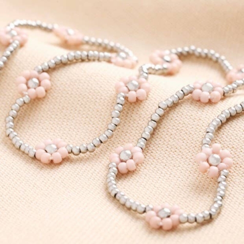 Featuring dainty, silver stainless steel beads and small pink flowers.Fastens easily with a lobster clasp and includes a built-in chain link extender for an adjustable and comfortable fit.Dimensionschain length 37cm with 5cm extender linkMade fromstainless steel