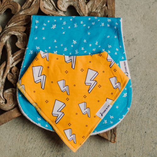 Our Dribble Bib and Burp Cloth set are super soft and contain our bespoke Irish designed prints. This set includes: